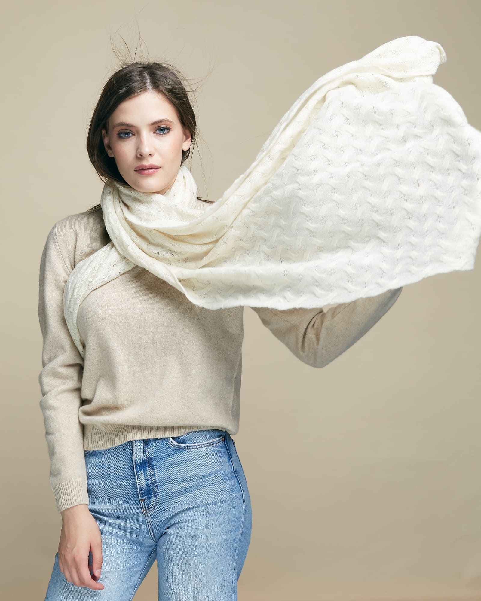 Палантин из кашемира 15007b кремовый
