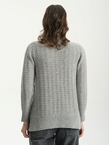 Модель выполнена в классическом дизайне с круглым вырезом и прямым силуэтом, что делает её универсальной и подходящей для любого типа фигуры. Тщательно проработанная вязка с традиционным узором обеспечивает оптимальную плотность и износостойкость изделия. Серый цвет придает джемперу практичность и стилистическую гибкость, легко интегрируясь в различные образы.