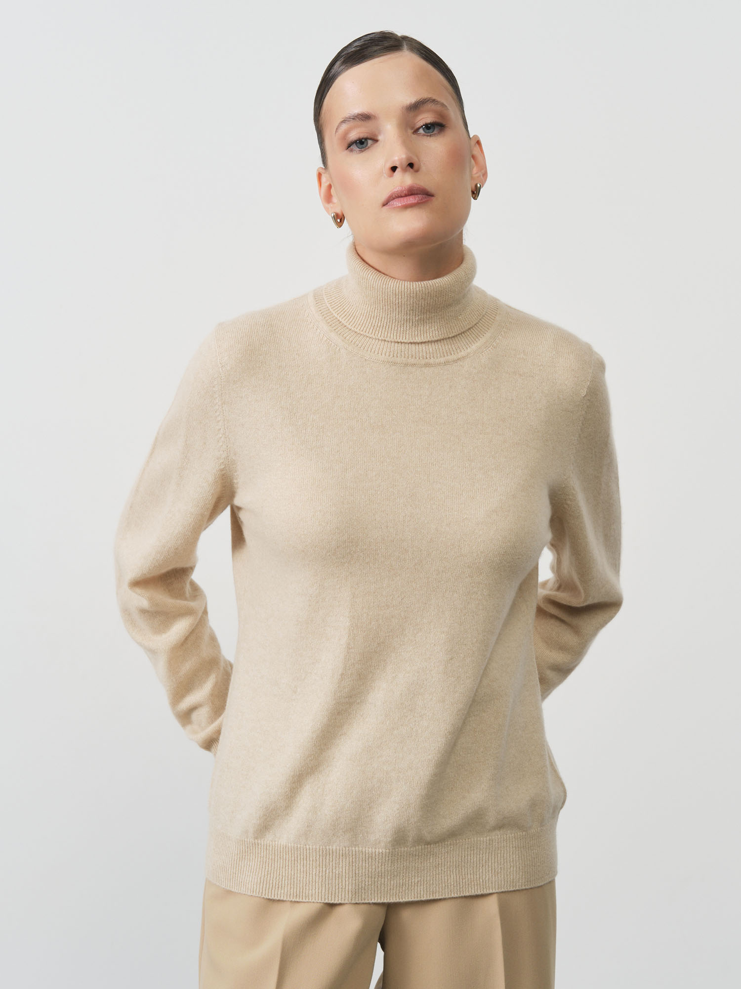 Классический крой водолазки с высоким воротником обеспечивает элегантный силуэт и дополнительную защиту от холода. Мягко облегающий фасон подчеркивает фигуру, но при этом не стесняет движений благодаря естественной эластичности кашемира. Высокий воротник не только является стильным элементом, но и защищает шею от холода и ветра.