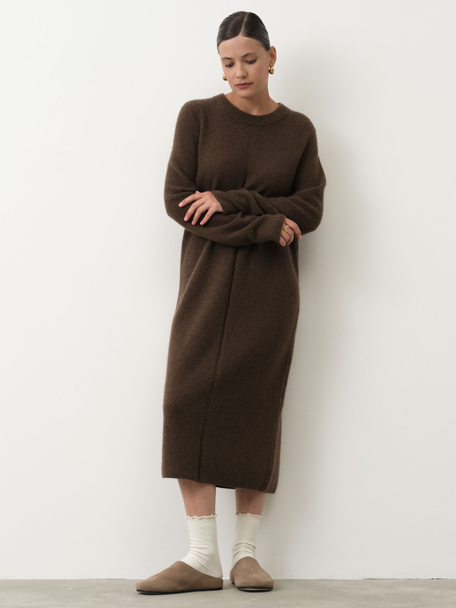 Платье приятное, теплое, почти не колется. Цвет светлее чем на картинке. На мой 46 подошёл размер М. На Рост 162 длина как на фото. Красиво сделана горловина. Посмотрю как будет в носке. Пока нравится |