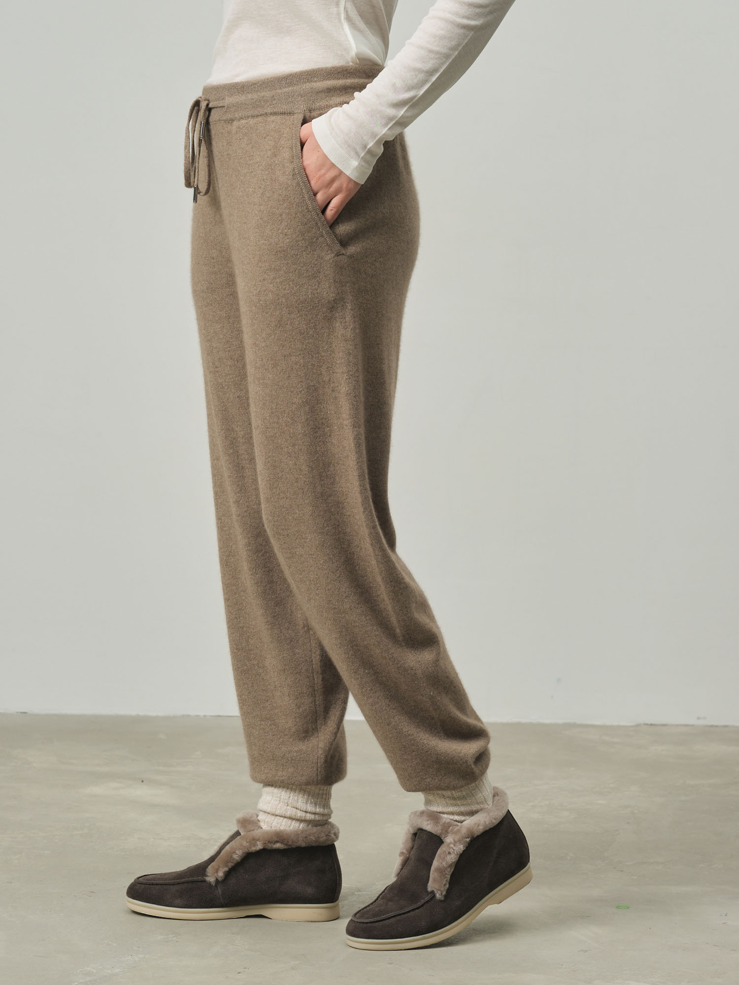 Брюки женские из кашемира KW150839-E капучино