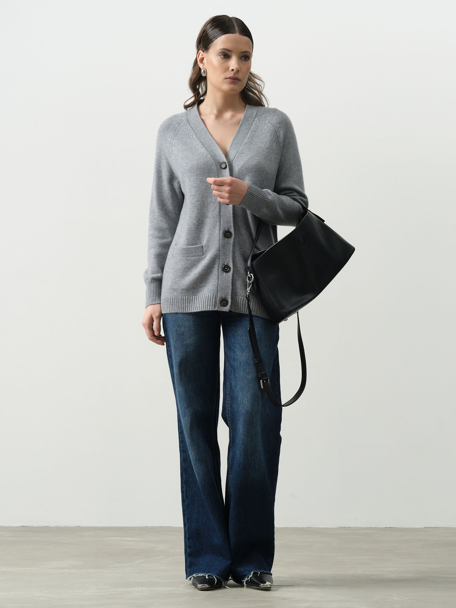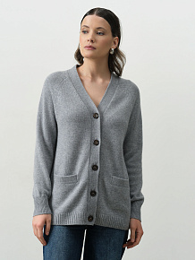 Нежный серо-голубой оттенок добавляет образу утонченности и свежести, органично сочетаясь как с нейтральными, так и с яркими цветами. Кардиган одинаково выигрышно смотрится в деловых и повседневных ансамблях, а также станет идеальным дополнением к вечернему наряду в прохладный вечер.